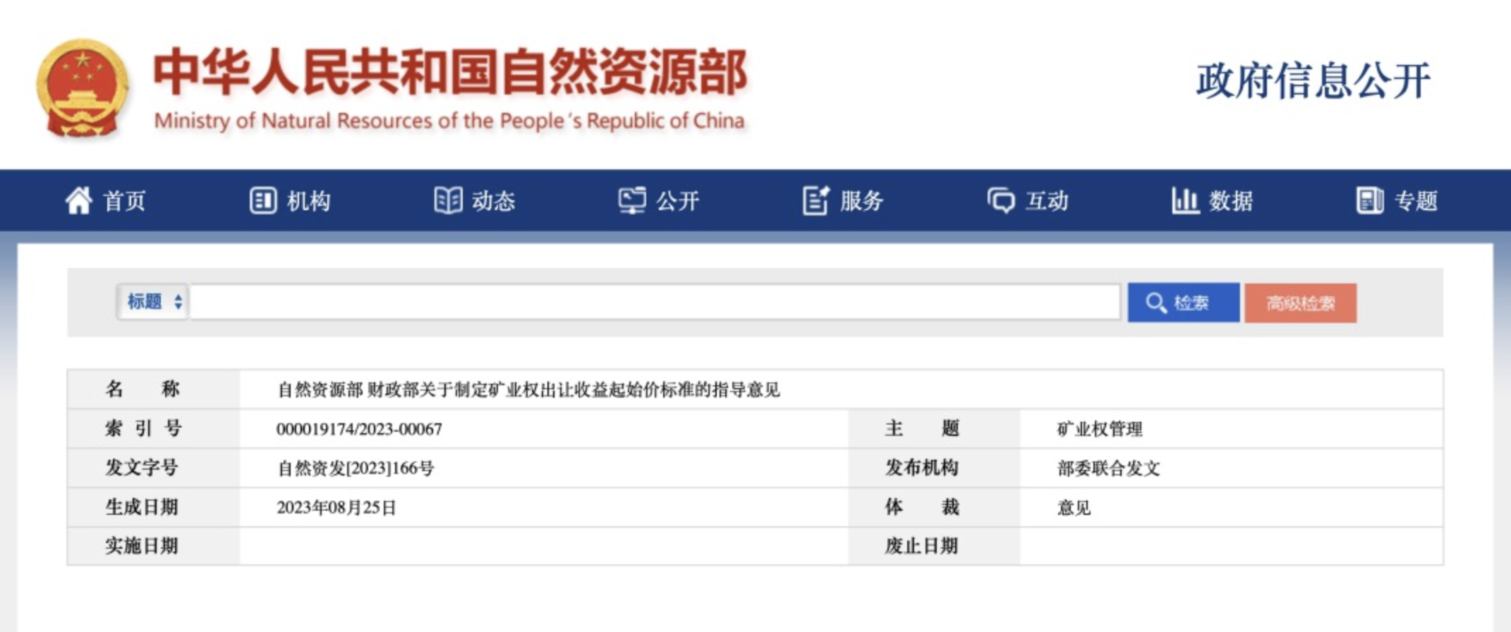 重要文件!礦業(yè)權(quán)出讓收益起始價(jià)標(biāo)準(zhǔn)發(fā)布